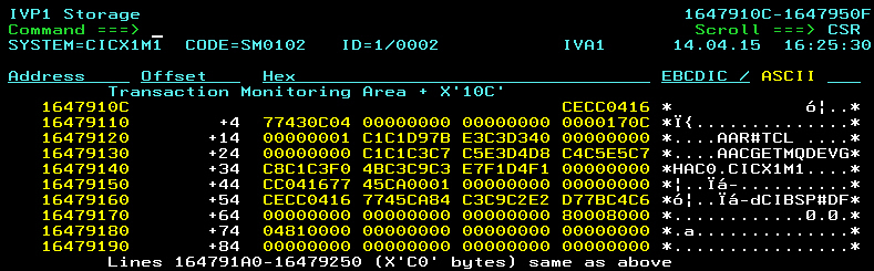 Attachment (Use case): Example: STCK value at 1647910C: Display is spread over 2 lines.