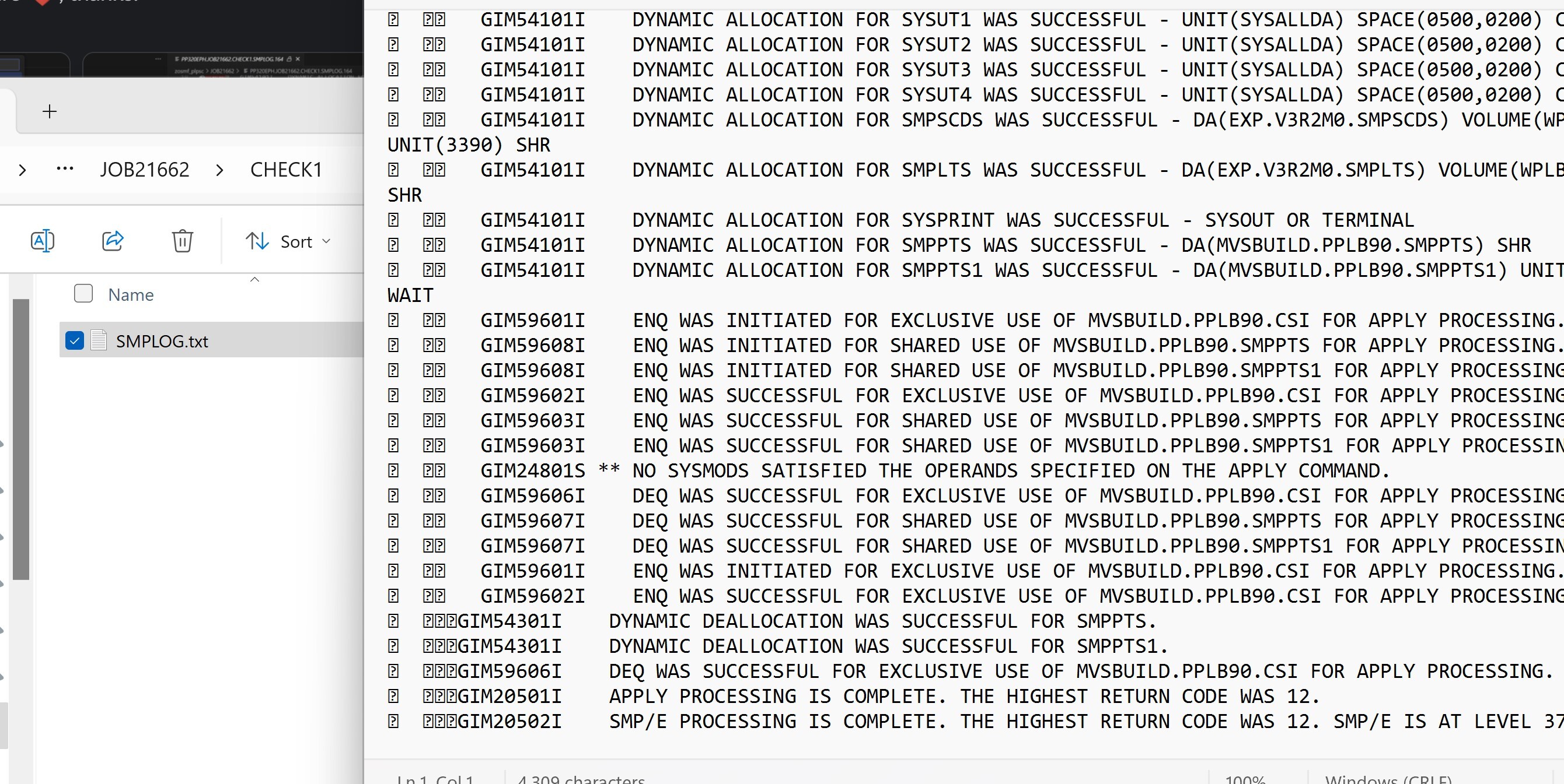 When ZOAU read all job log STEPs it skips "CHECK1 SMPLOG 164" due to the fact that sometimes this step is in BINARY mode. The problem is that the Return Code detail message is within that step and it cannot be extracted.