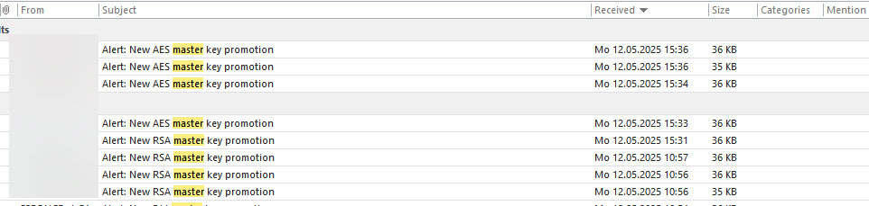This is to request an update in the way zSecure Alert generates the mail for the master key rotation.